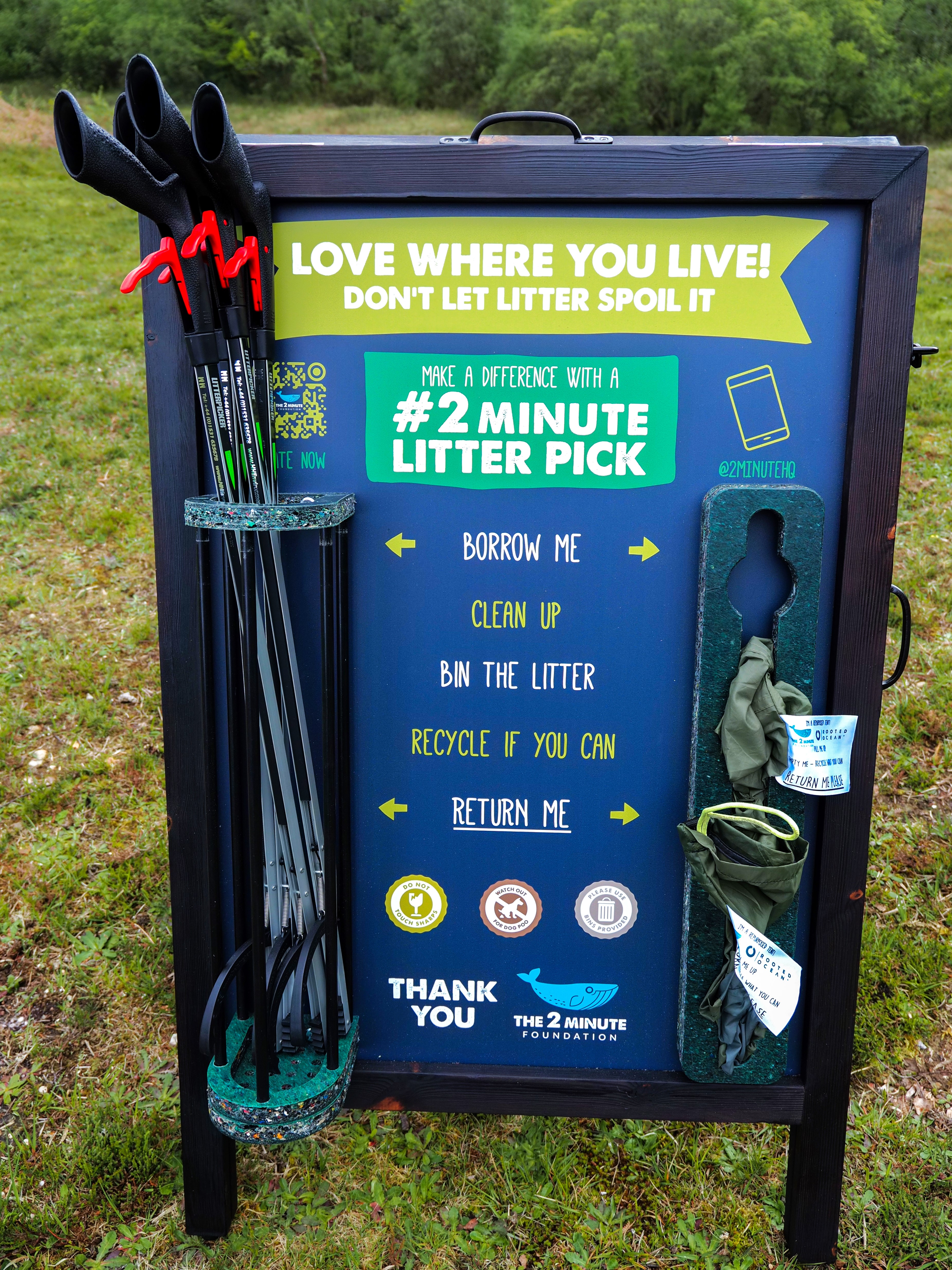 Our Stations are a complete litter picking tool. Users simply take a bag, take a litter picker and pick up litter for 2 minutes or more.